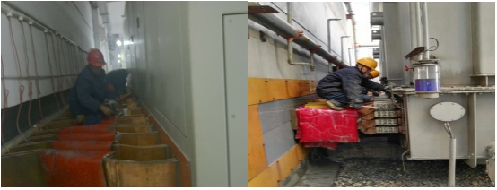 今年,對(duì)動(dòng)力供電系統(tǒng)的濾油和檢修自2016年11月11日開始至2016年12月14日結(jié)束,歷時(shí)34天,在車間負(fù)責(zé)人的帶領(lǐng)下,運(yùn)行各班組按照要求統(tǒng)一協(xié)作,以飽滿的工作熱情與低溫天氣和各種困難作斗爭(zhēng),將工作重心圍繞在機(jī)組濾油和供電系統(tǒng)全面檢修上,他們有條不紊對(duì)計(jì)劃安排的整流柜銅母線螺栓、一次高壓開關(guān)和刀閘的瓷瓶、保護(hù)二次系統(tǒng)的端子排、控制柜進(jìn)行全面清掃及螺絲緊固,對(duì)變壓器進(jìn)行清洗,同時(shí)加強(qiáng)設(shè)備巡視,對(duì)濾波系統(tǒng)檢查出的刀閘操作機(jī)構(gòu)嚴(yán)重銹蝕,銅鋁過(guò)渡連接板開裂等進(jìn)行了及時(shí)處理,認(rèn)真進(jìn)行消缺,保證了供電安全平穩(wěn)。